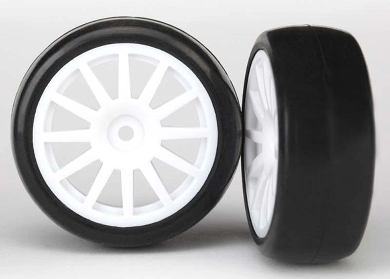 Komplettrad 1:18, Slick-Reifen auf weißer 12-Speichen-Felge, passend für Traxxas Latrax 1:18