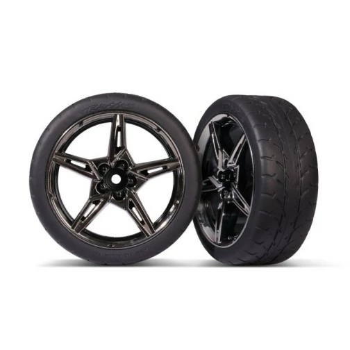 Tires and wheels, assembled, glued (split-spoke black chrome wheels, 2.1″ Response tires) (front) (2)