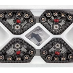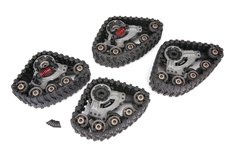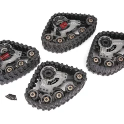 Jede Traxx Antriebseinheit ist auf robuste und dennoch gleichmäßige Leistung ausgelegt. Ein verstellbares Spannrad hält die Laufflächen straff, während hängende Straßenräder die Anpassung der Lauffläche an Oberflächenunebenheiten für maximale Traktion ermöglichen. Ölgefüllte Dämpfer an jeder Antriebseinheit steuern die Drehbewegungen, um das Profil auf der Oberfläche zu halten. Die hinteren Traxx Antriebseinheiten sind länger, damit Sie mit Autorität steiler klettern können.