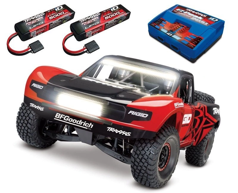 Unlimited Desert Racer 4×4 Racing Truck mit LED bis 6S Rigid – inkl. 2x3S 5000mAh Traxxas LiPo Akku und Traxxas ID Duo Schnelladegerät 220V