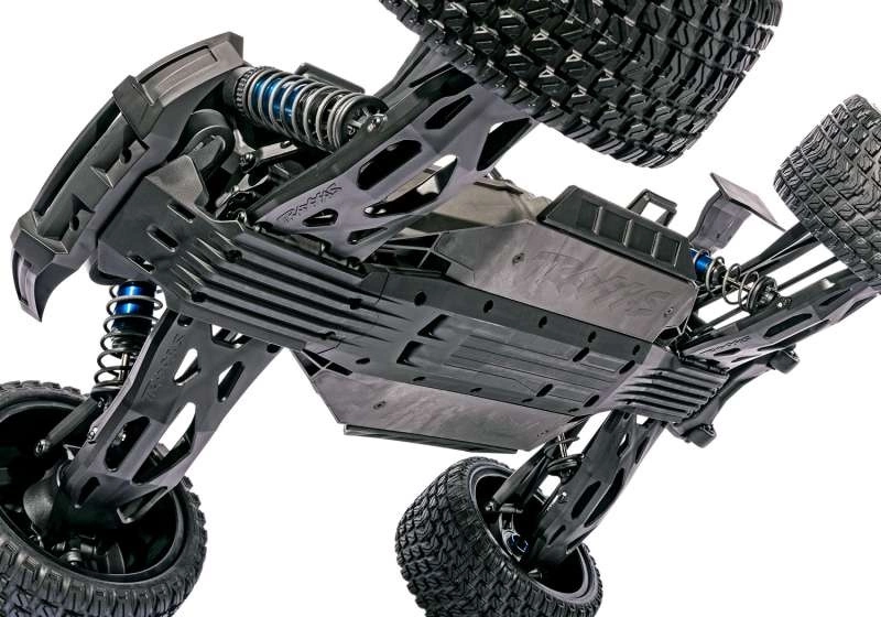 Das leistungsorientierte Chassisdesign des XRT ist so konfiguriert, dass der Schwerpunkt niedriger liegt, um ein besseres Handling und mehr Stabilität zu erreichen. Die beiden 6700 4s Akkus und das Lenkservo sind so positioniert, dass das Gewicht so niedrig wie möglich im Chassis liegt und diese kritischen Komponenten geschützt sind.