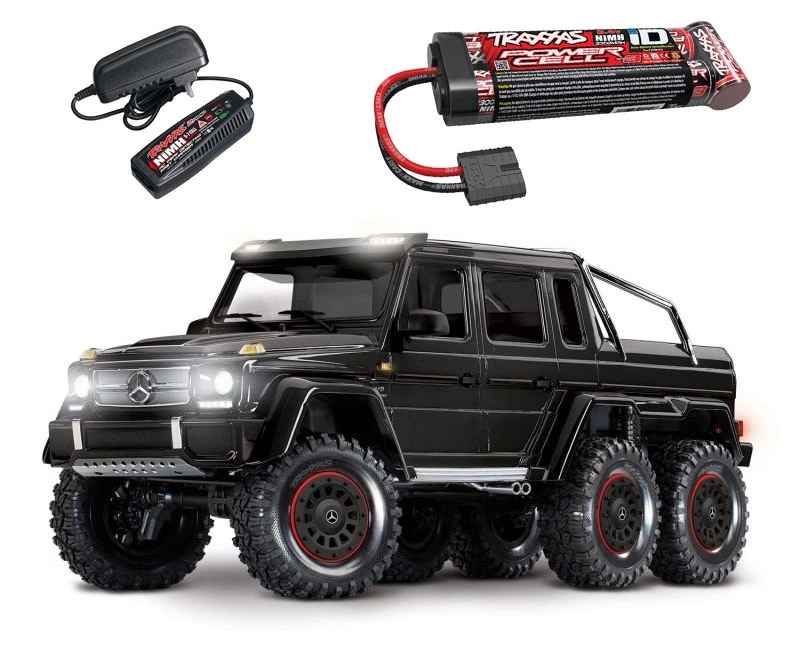 Mercedes-Benz G63 AMG 6×6 RTR 1/10 6WD Scale-Crawler Schwarz mit LED-Beleuchtung inkl. original Traxxas EZ-Peak Plus iD Ladegerät und 3000mAh 8,4V NiMh iD Akku